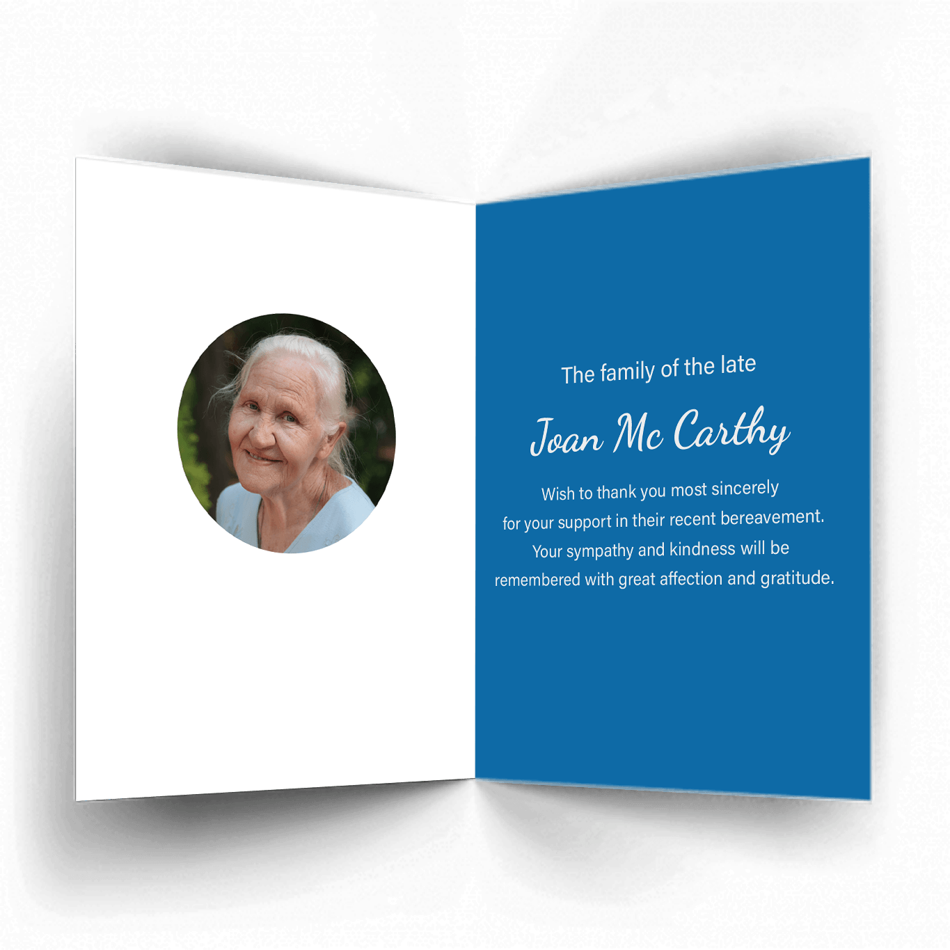 “A Personalised Memorial Acknowledgement Card or Thank you card is a touching way to express your gratitude and to acknowledge the importance of the help and support you received after your loss.”