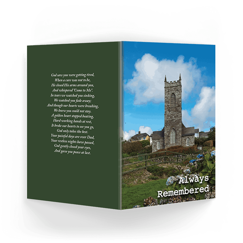 “A Personalised Memorial Card is a popular touching keepsake to remember and pay tribute to a lost loved one. They are a great memory to give to your friends and family and for people who were unable to make the ceremony.”