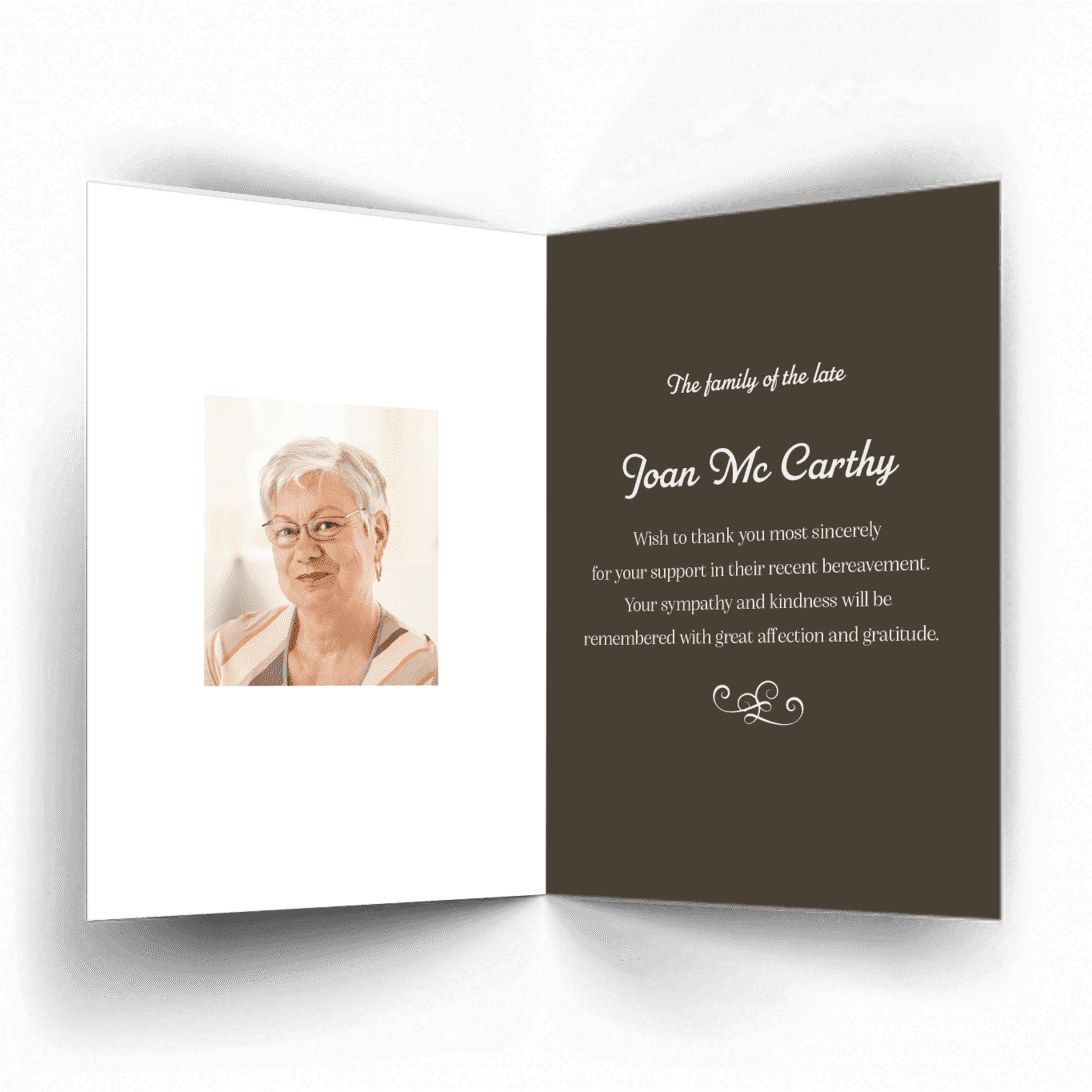 “A Personalised Memorial Acknowledgement Card or Thank you card is a touching way to express your gratitude and to acknowledge the importance of the help and support you received after your loss.”