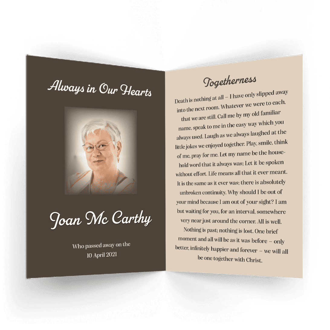 “A Personalised Memorial Card is a popular touching keepsake to remember and pay tribute to a lost loved one. They are a great memory to give to your friends and family and for people who were unable to make the ceremony.”