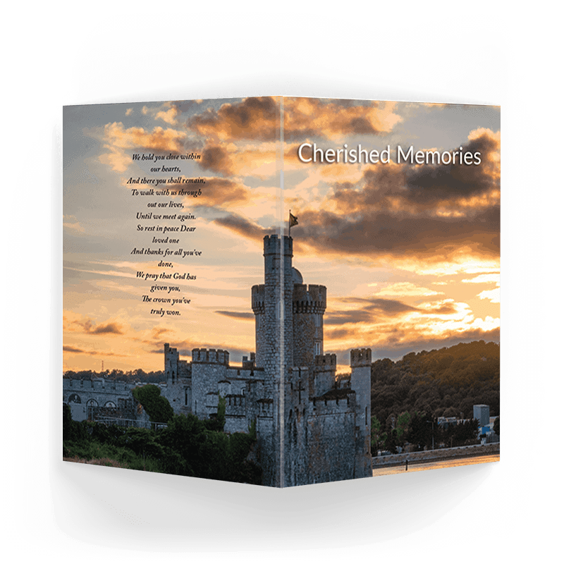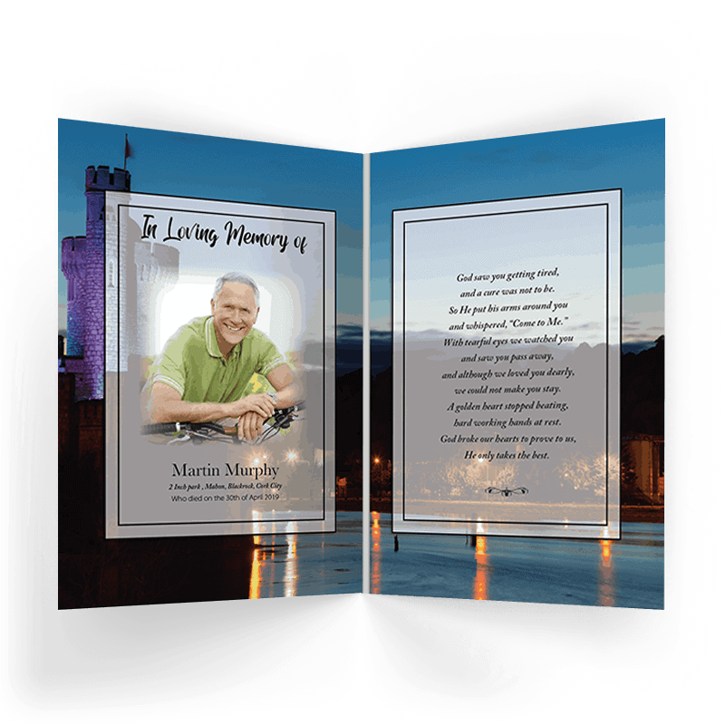 Our Beautiful Blackrock Castle scenic memorial cards are Printed on the highest quality coated art board and finished with a high gloss laminate.