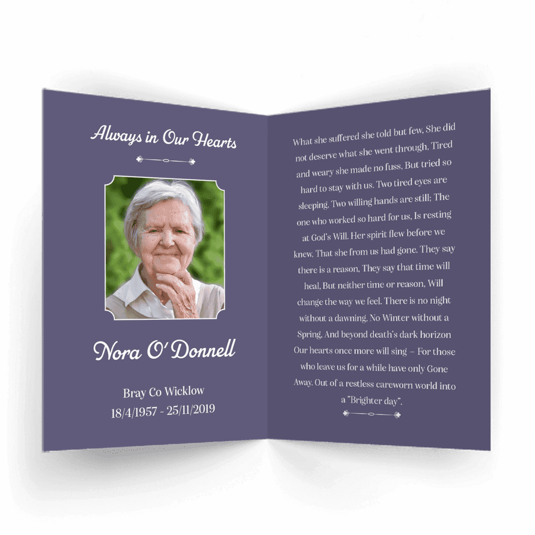 “A Personalised Memorial Card is a popular touching keepsake to remember and pay tribute to a lost loved one. They are a great memory to give to your friends and family and for people who were unable to make the ceremony.”