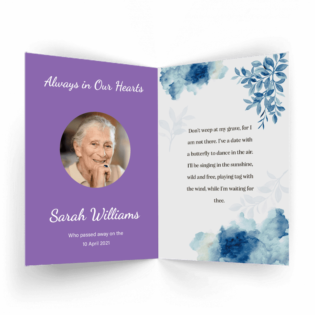 - Our memorial cards are finished to size 75mm x 105mm when folded.