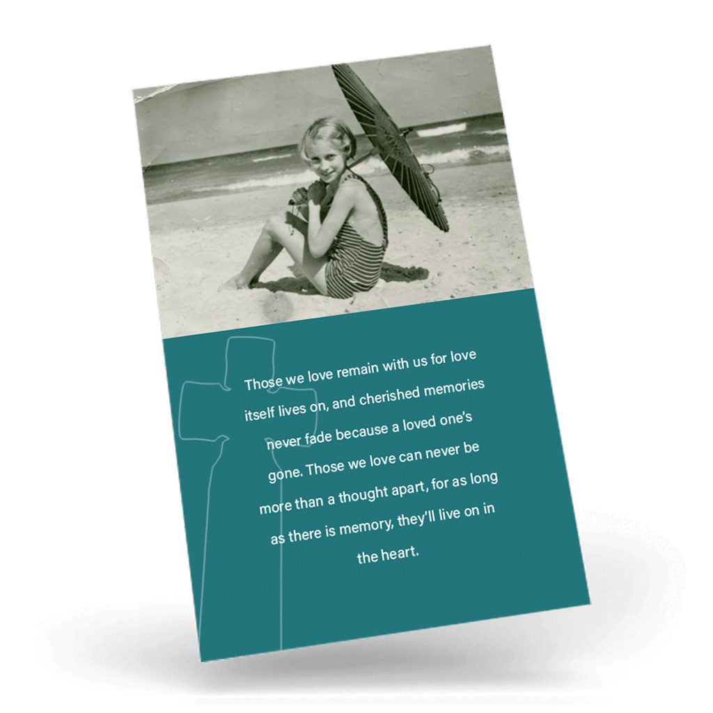 “A Personalised Memorial Wallet Card is a popular touching keepsake to remember and pay tribute to a lost loved one. They are a great memory to give to your friends and family and for people who were unable to make the ceremony.”