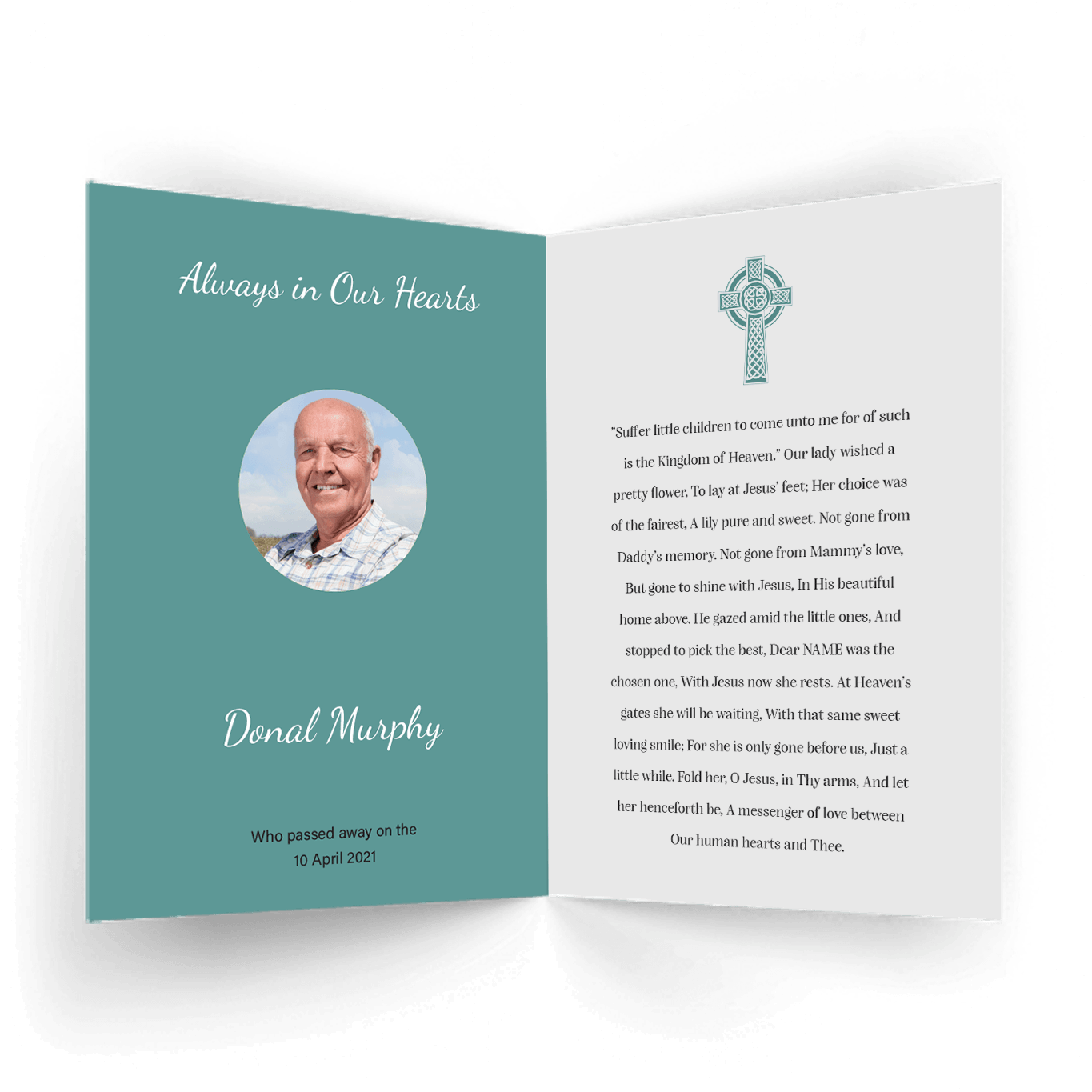 “A Personalised Memorial Card is a popular touching keepsake to remember and pay tribute to a lost loved one. They are a great memory to give to your friends and family and for people who were unable to make the ceremony.”