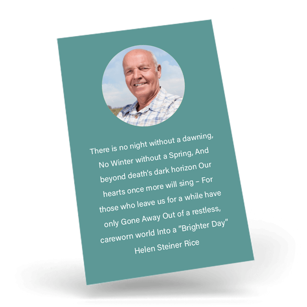 • Our memorial wallet cards are finished to size 55mm x 85mm Tall.