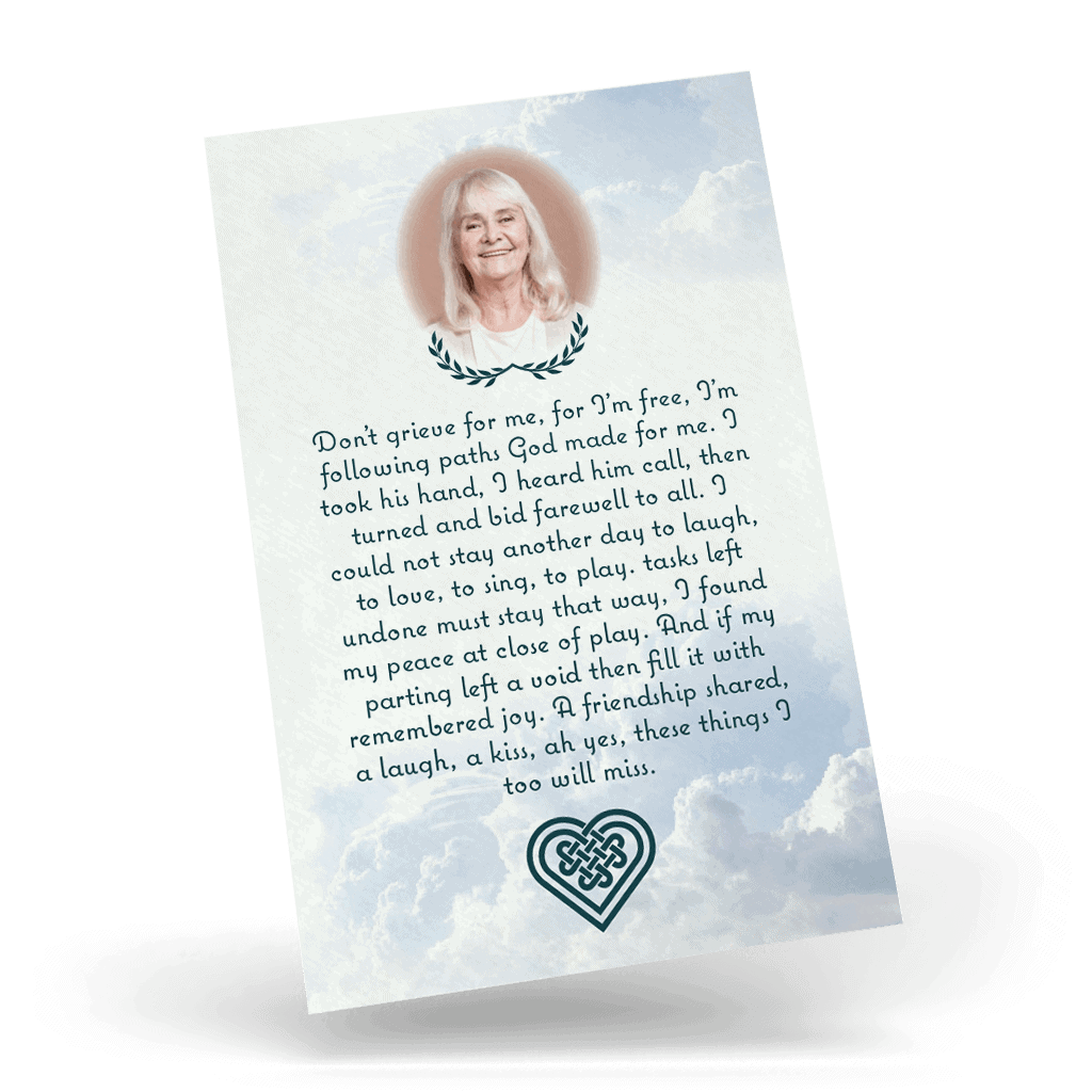 - Our memorial wallet cards are finished to size 55mm x 85mm Tall.
