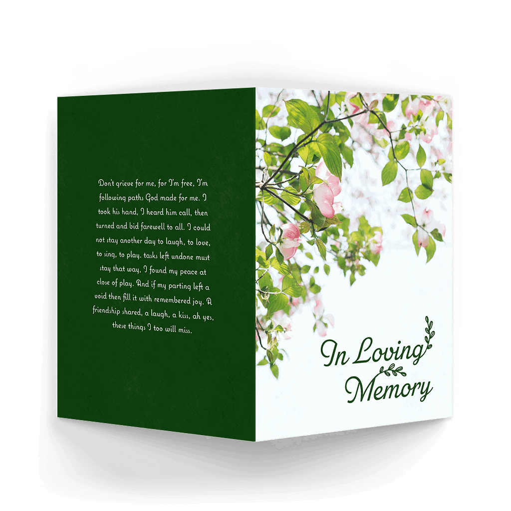 - Our memorial cards are finished to size 75mm x 105mm when folded.
