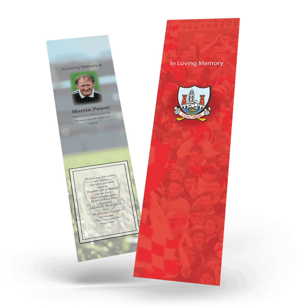 - Our memorial bookmarks are finished to size 55mm x 210mm (Standard Size.)