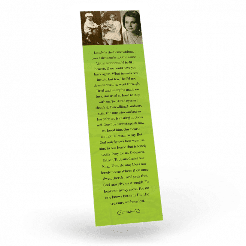 “Our Personalised Bookmark is a touching keepsake to remember and pay tribute to a lost loved one. They are a great memory to give to your friends and family and for people who were unable to make the ceremony.”