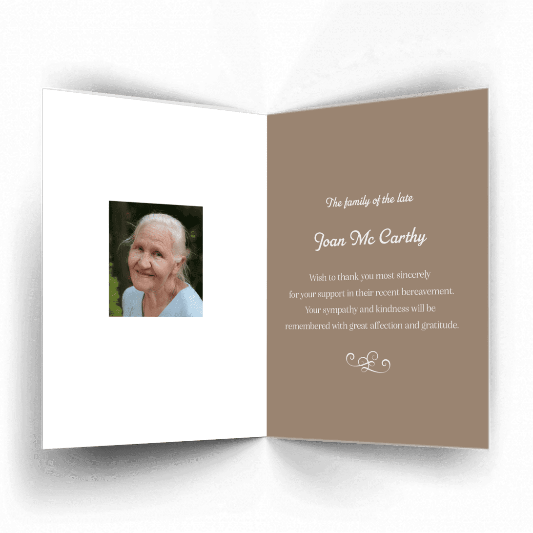 “A Personalised Memorial Acknowledgement Card or Thank you card is a touching way to express your gratitude and to acknowledge the importance of the help and support you received after your loss.”