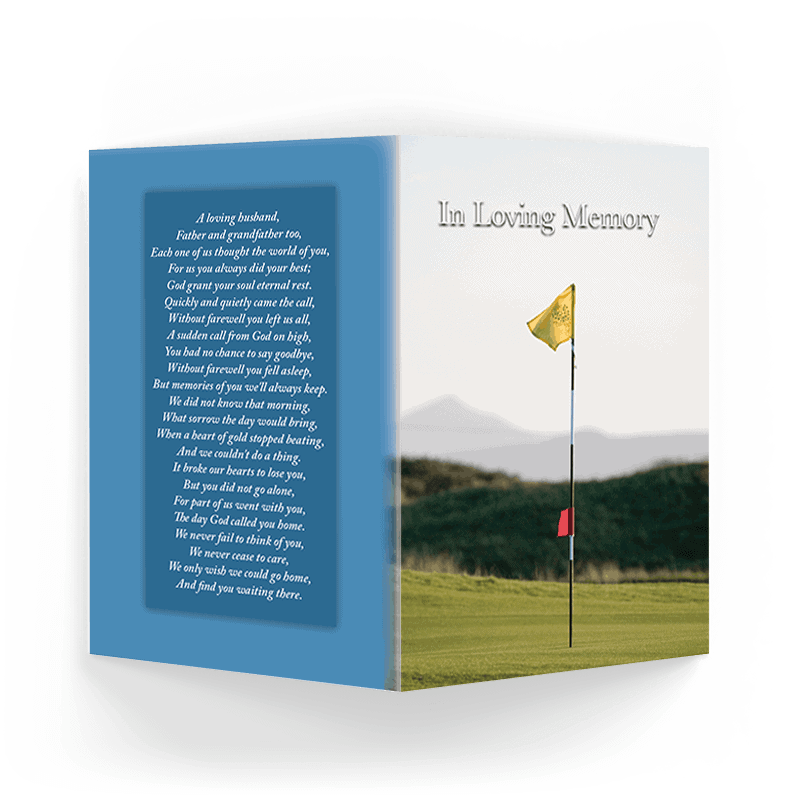 10 miles to the north of Dublin City and only a 15-minute drive from Dublin Airport, Portmarnock Golf Club in Dublin is the subject of our scenic memorial cards and is Printed on the highest quality coated art board and finished with a high gloss laminate.