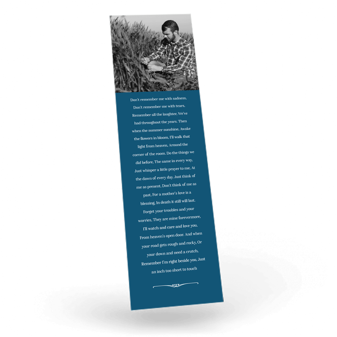 “A Personalised Memorial Bookmark is a popular touching keepsake to remember and pay tribute to a lost loved one. They are a great memory to give to your friends and family and for people who were unable to make the ceremony.”