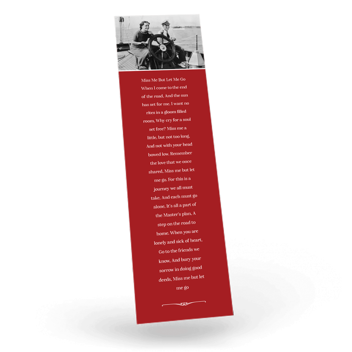 “A Personalised Memorial Bookmark is a popular touching keepsake to remember and pay tribute to a lost loved one. They are a great memory to give to your friends and family and for people who were unable to make the ceremony.”