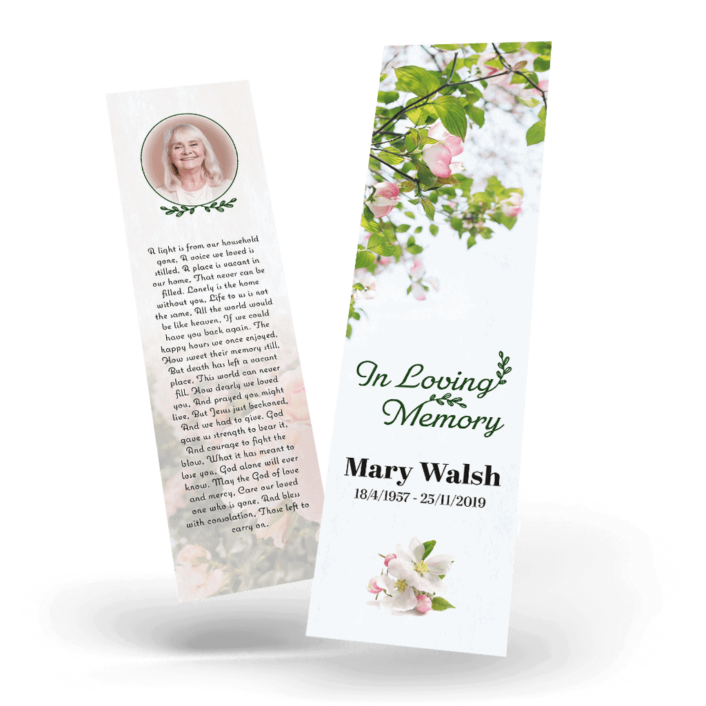 “A Personalised Memorial Bookmark is a popular touching keepsake to remember and pay tribute to a lost loved one. They are a great memory to give to your friends and family and for people who were unable to make the ceremony.”