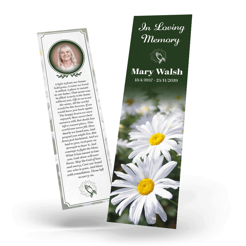 “A Personalised Memorial Bookmark is a popular touching keepsake to remember and pay tribute to a lost loved one. They are a great memory to give to your friends and family and for people who were unable to make the ceremony.”