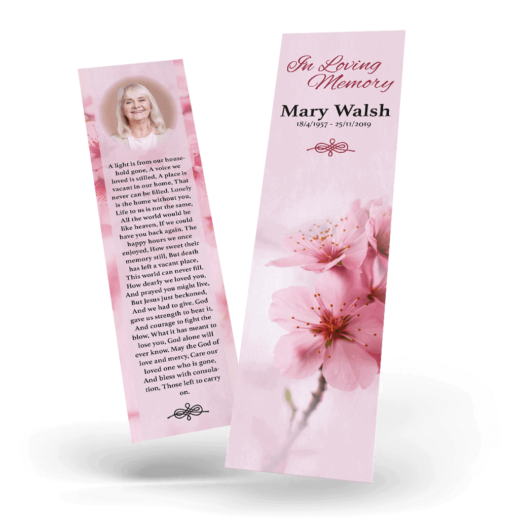“A Personalised Memorial Bookmark is a popular touching keepsake to remember and pay tribute to a lost loved one. They are a great memory to give to your friends and family and for people who were unable to make the ceremony.”