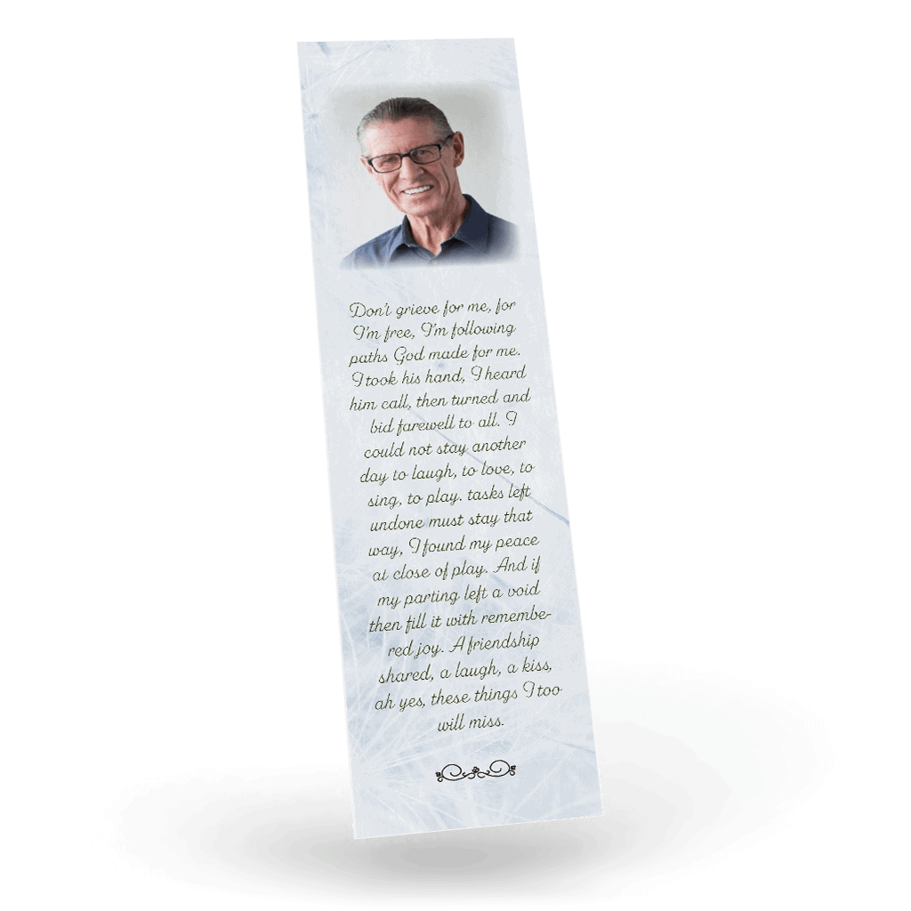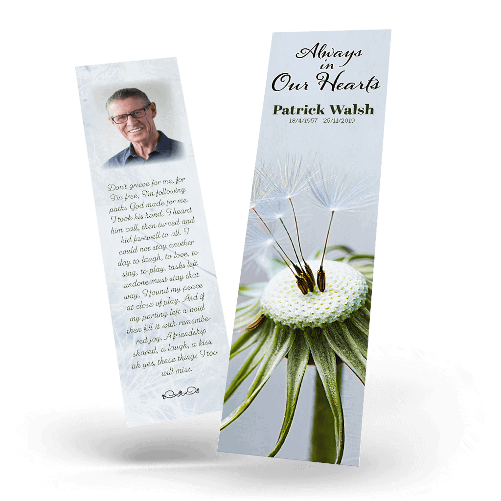 “A Personalised Memorial Bookmark is a popular touching keepsake to remember and pay tribute to a lost loved one. They are a great memory to give to your friends and family and for people who were unable to make the ceremony.”
