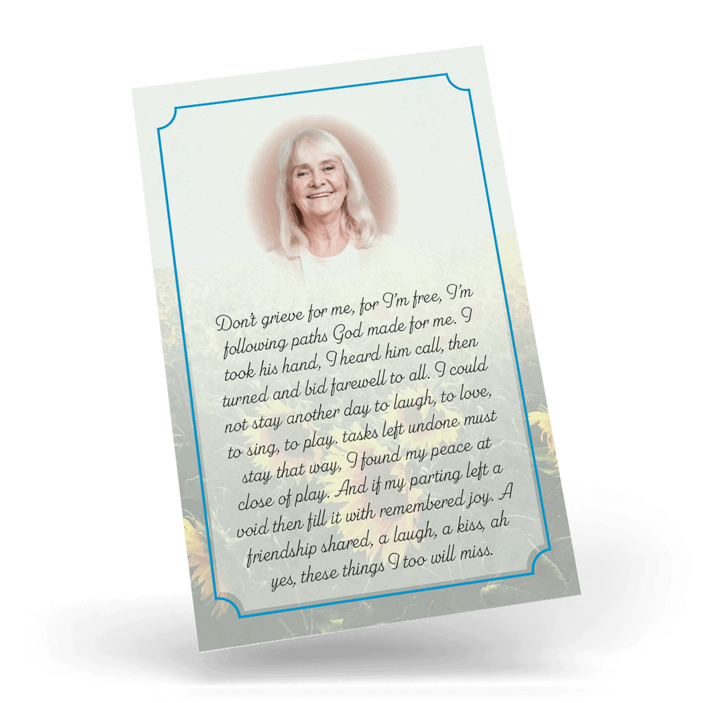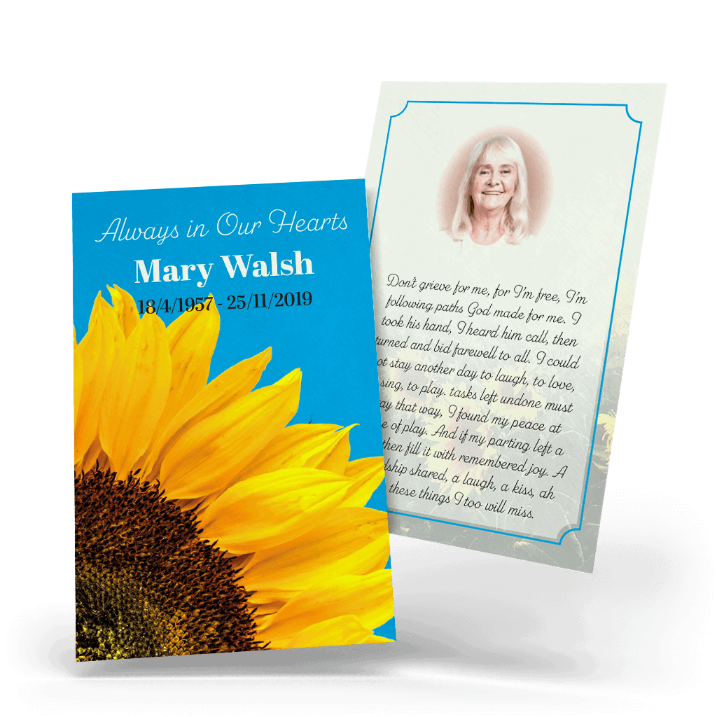 • Our memorial wallet cards are finished to size 55mm x 85mm Tall.