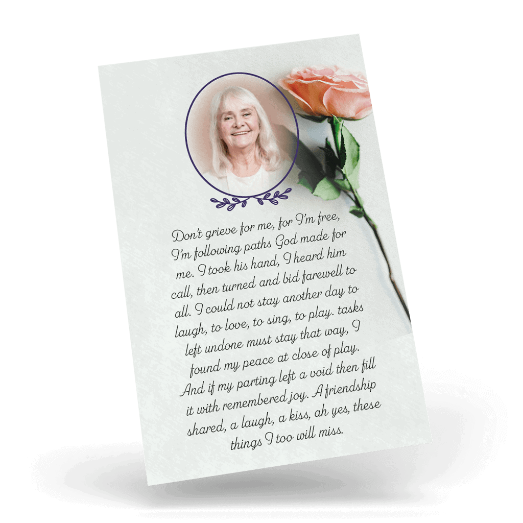 - Our memorial wallet cards are finished to size 55mm x 85mm Tall.