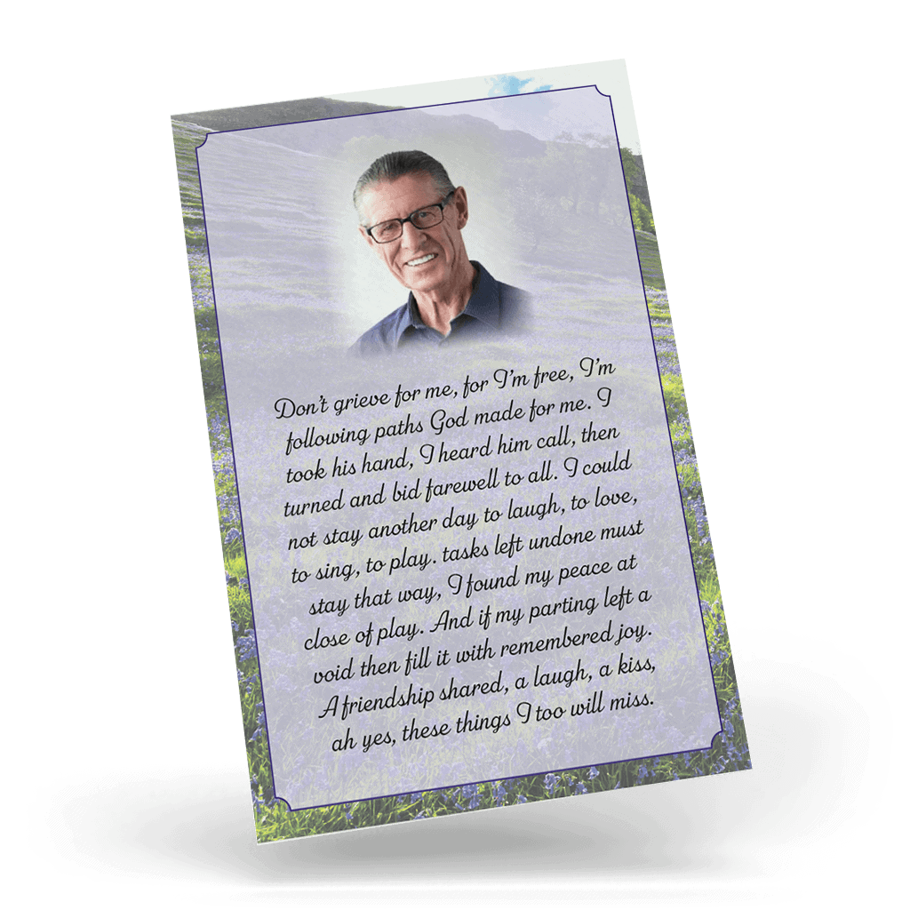 • Our memorial wallet cards are finished to size 55mm x 85mm Tall.