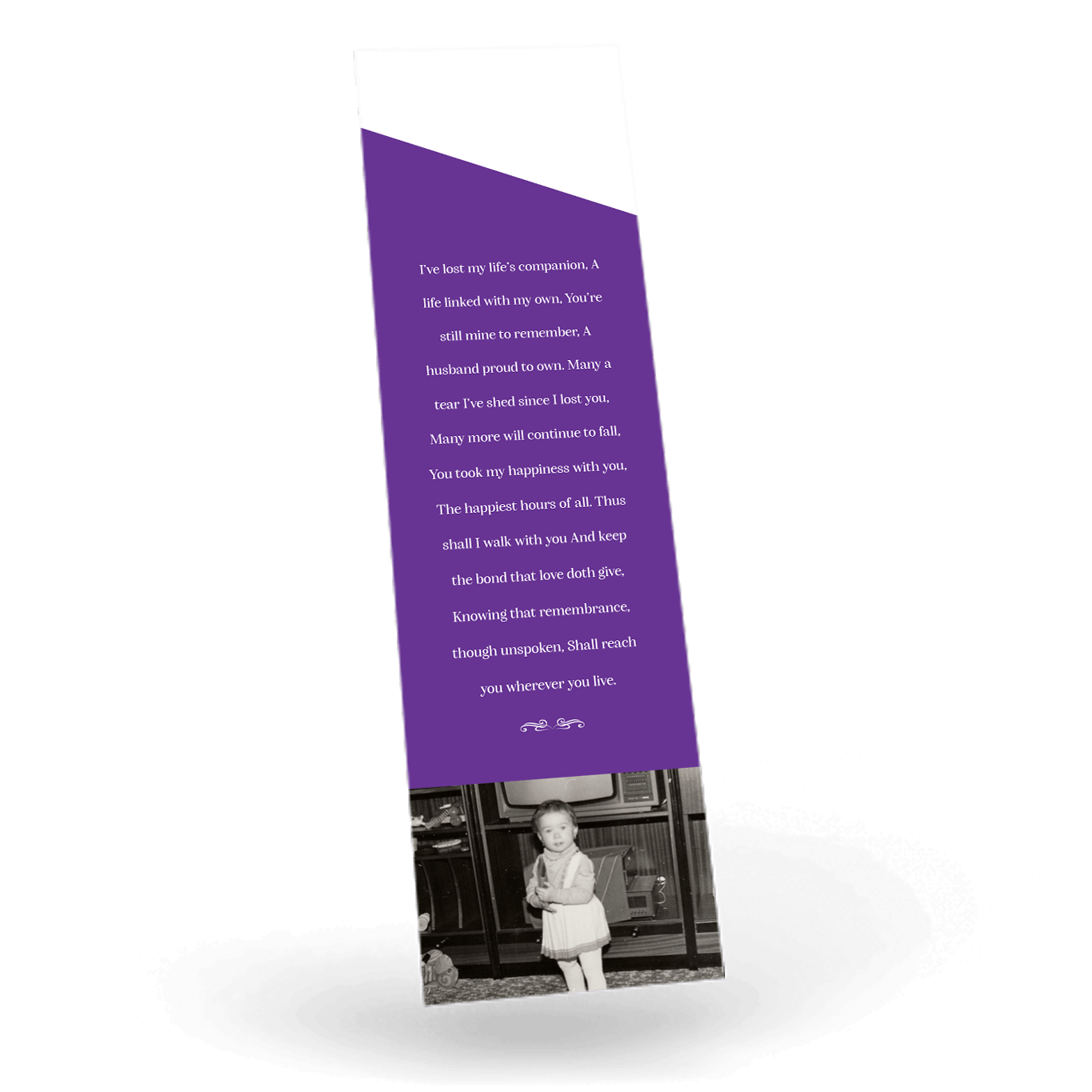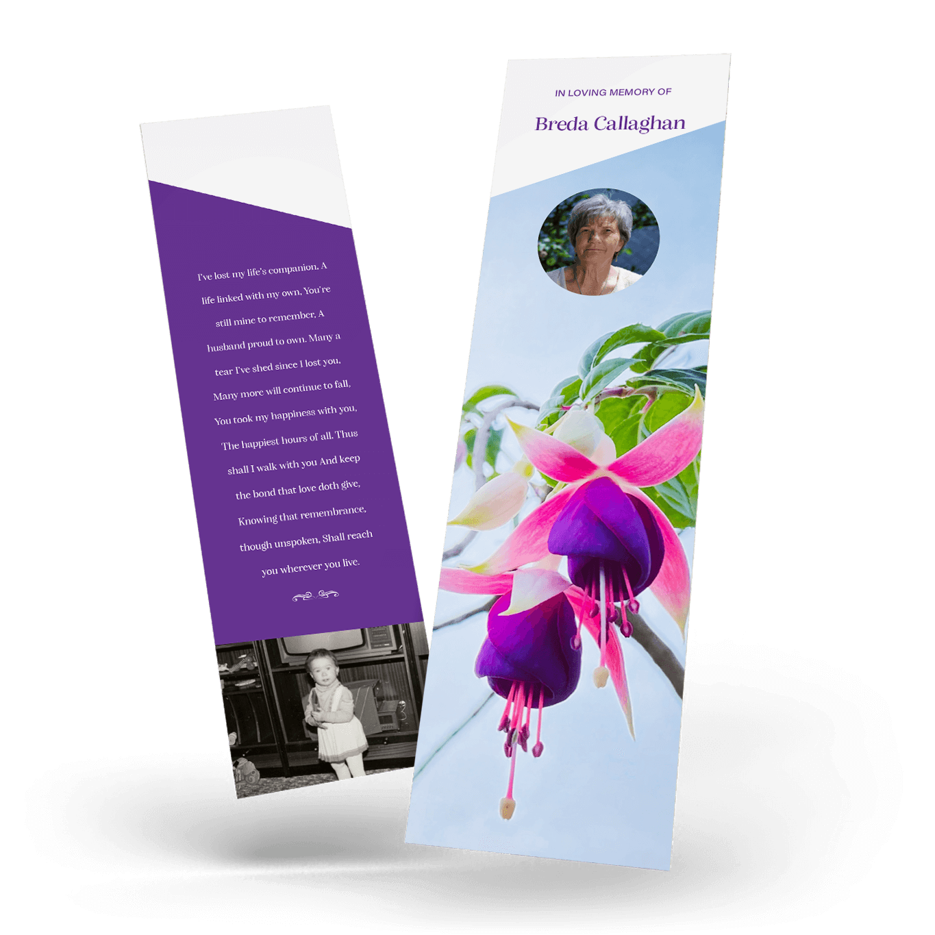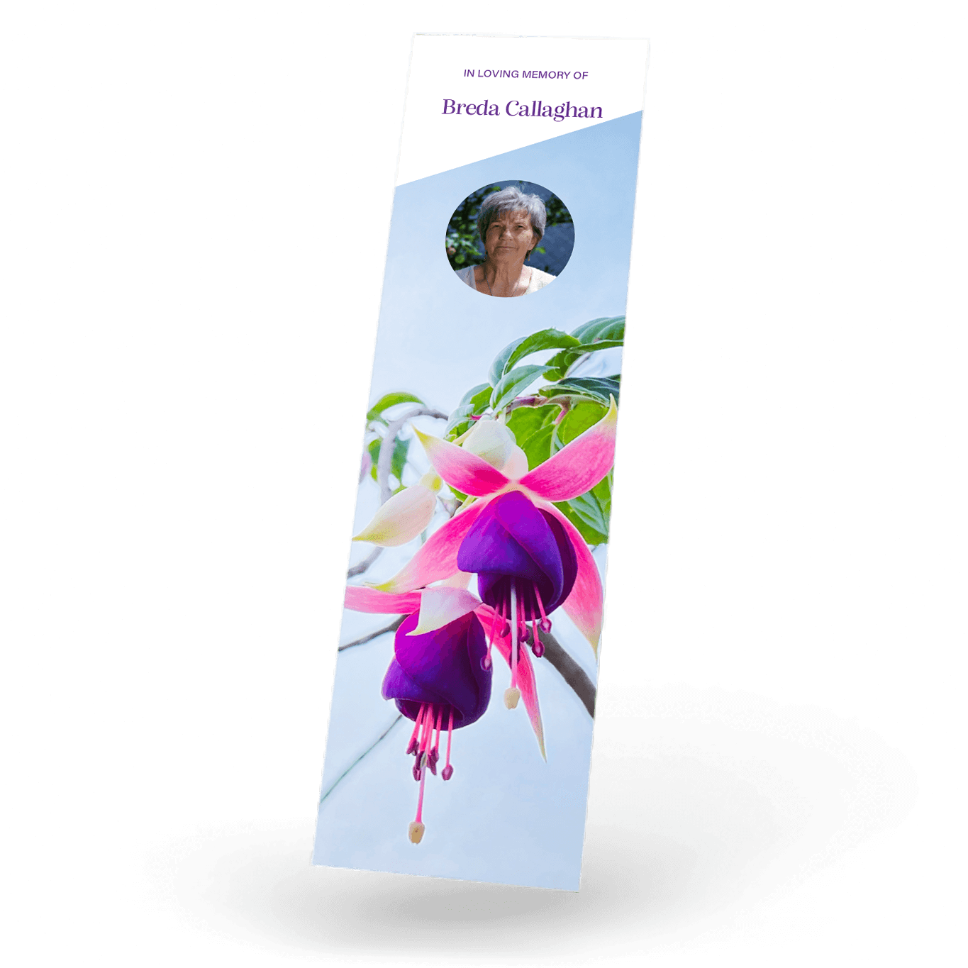 “A Personalised Memorial Bookmark is a popular touching keepsake to remember and pay tribute to a lost loved one. They are a great memory to give to your friends and family and for people who were unable to make the ceremony.”