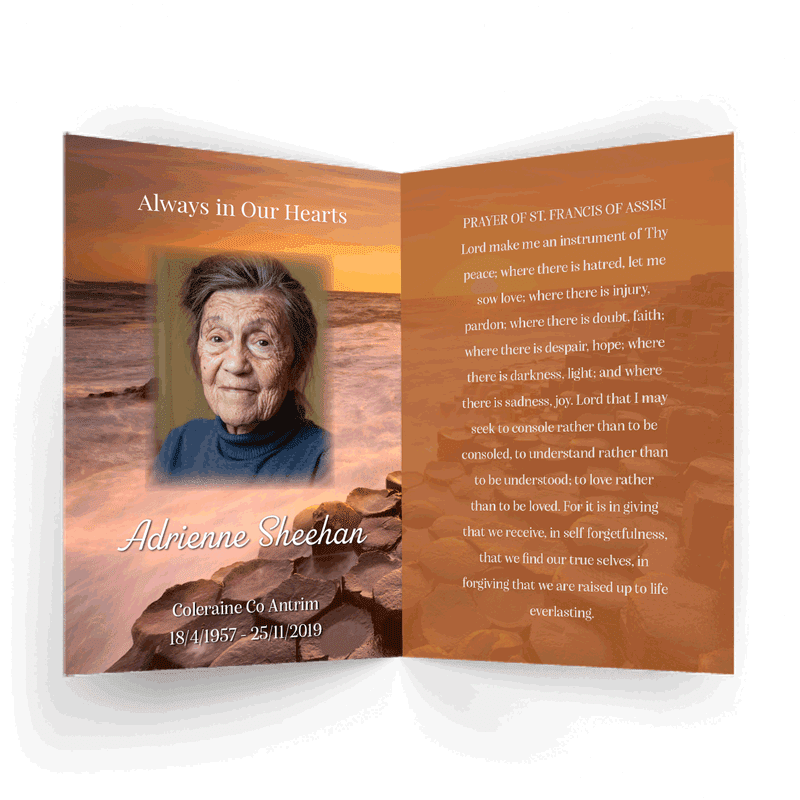 “A Personalised Memorial Card is a popular touching keepsake to remember and pay tribute to a lost loved one. They are a great memory to give to your friends and family and for people who were unable to make the ceremony.”