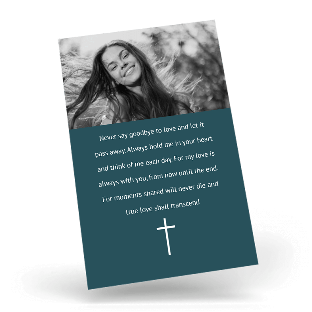 • Our memorial wallet cards are finished to size 55mm x 85mm Tall.