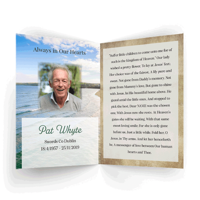 “A Personalised Memorial Card is a popular touching keepsake to remember and pay tribute to a lost loved one. They are a great memory to give to your friends and family and for people who were unable to make the ceremony.”