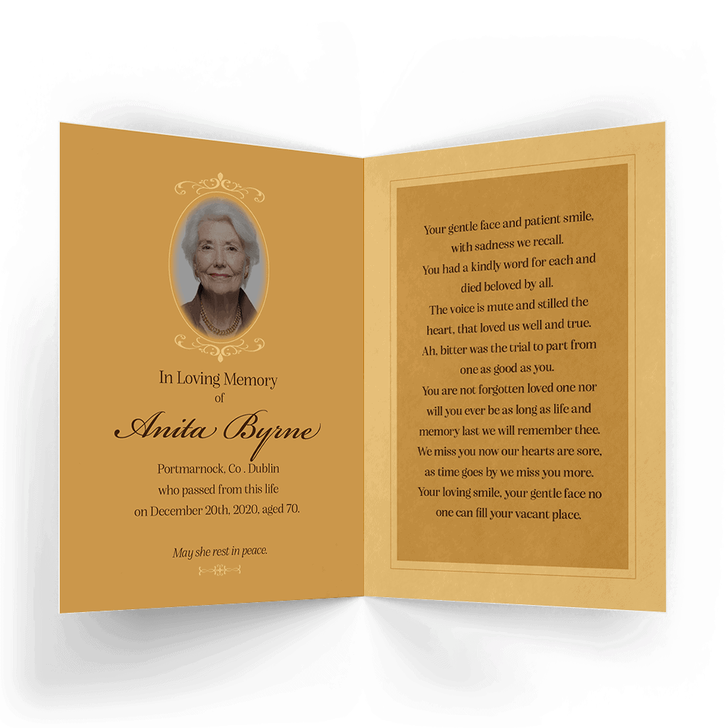 “A Personalised Memorial Card is a popular touching keepsake to remember and pay tribute to a lost loved one. They are a great memory to give to your friends and family and for people who were unable to make the ceremony.”