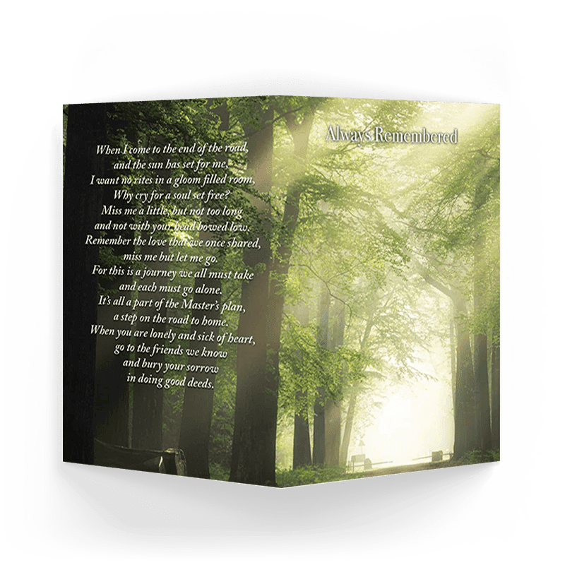 - Our memorial cards are finished to size 75mm x 105mm when folded.