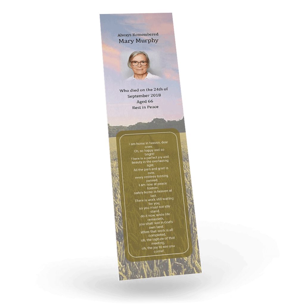 “A Personalised Memorial Bookmark is a popular touching keepsake to remember and pay tribute to a lost loved one. They are a great memory to give to your friends and family and for people who were unable to make the ceremony.”