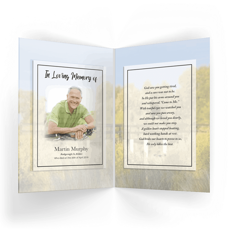 Our Beautiful county Kildare https://en.wikipedia.org/wiki/County_Kildare a beautiful town near dublin and steeped in history Kildare is a prominent Gaa county https://kildaregaa.ie/ scenic memorial cards are Printed on the highest quality coated art board and finished with a high gloss laminate.