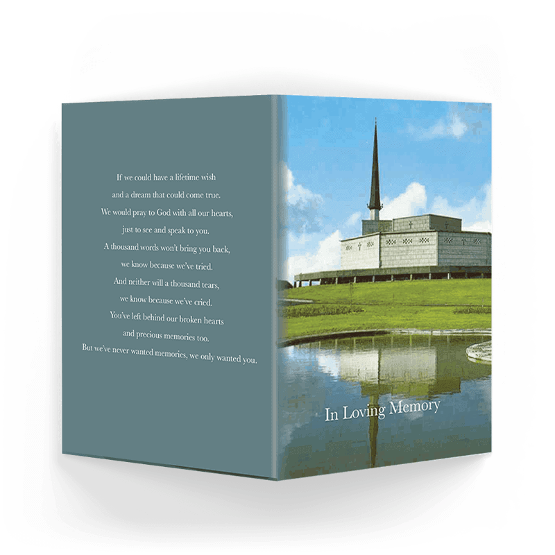 - Our memorial cards are finished to size 75mm x 105mm when folded.