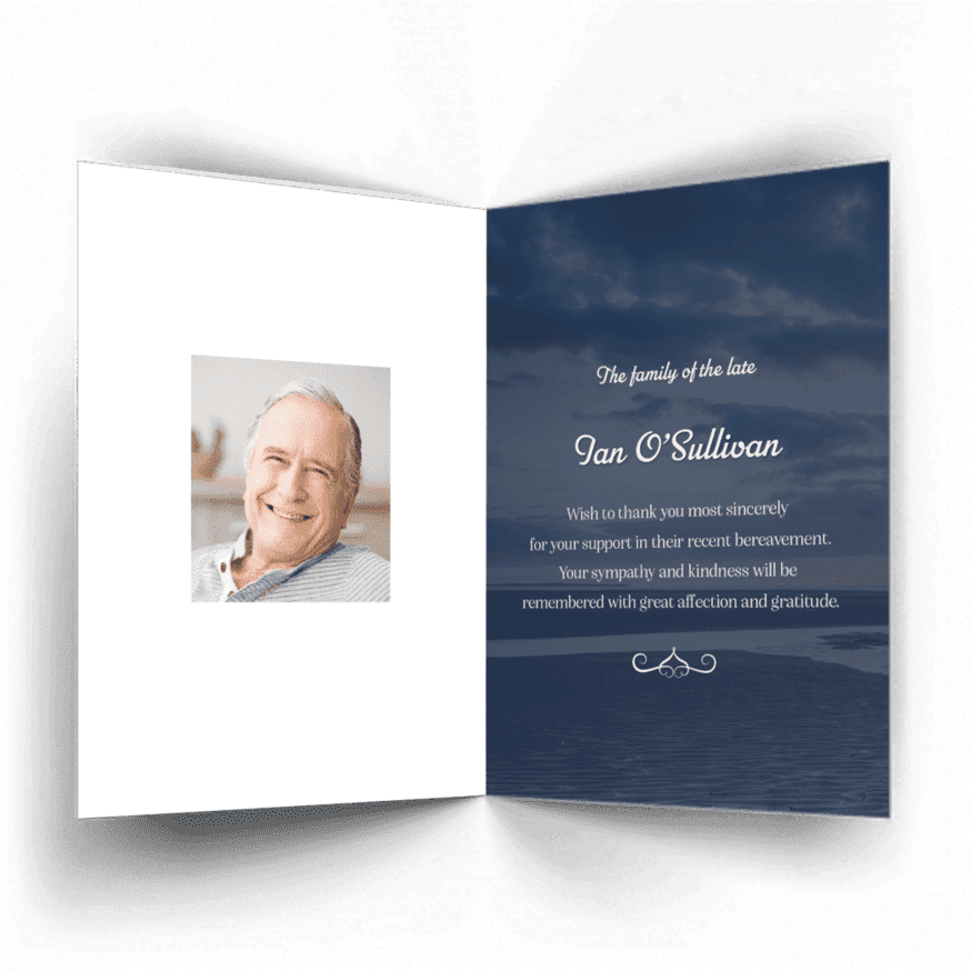 “A Personalised Memorial Acknowledgement Card or Thank you card is a touching way to express your gratitude and to acknowledge the importance of the help and support you received after your loss.”