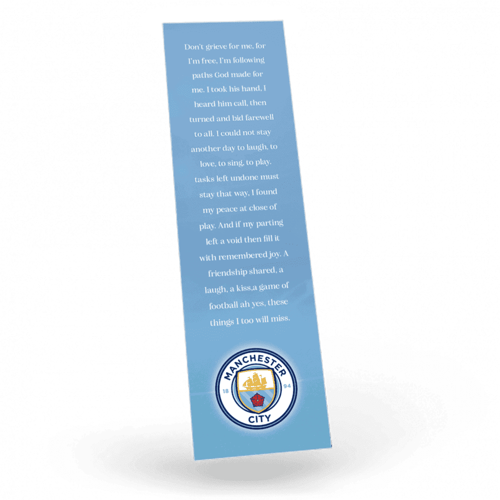 “A Personalised Memorial Bookmark is a popular touching keepsake to remember and pay tribute to a lost loved one. They are a great memory to give to your friends and family and for people who were unable to make the ceremony.”