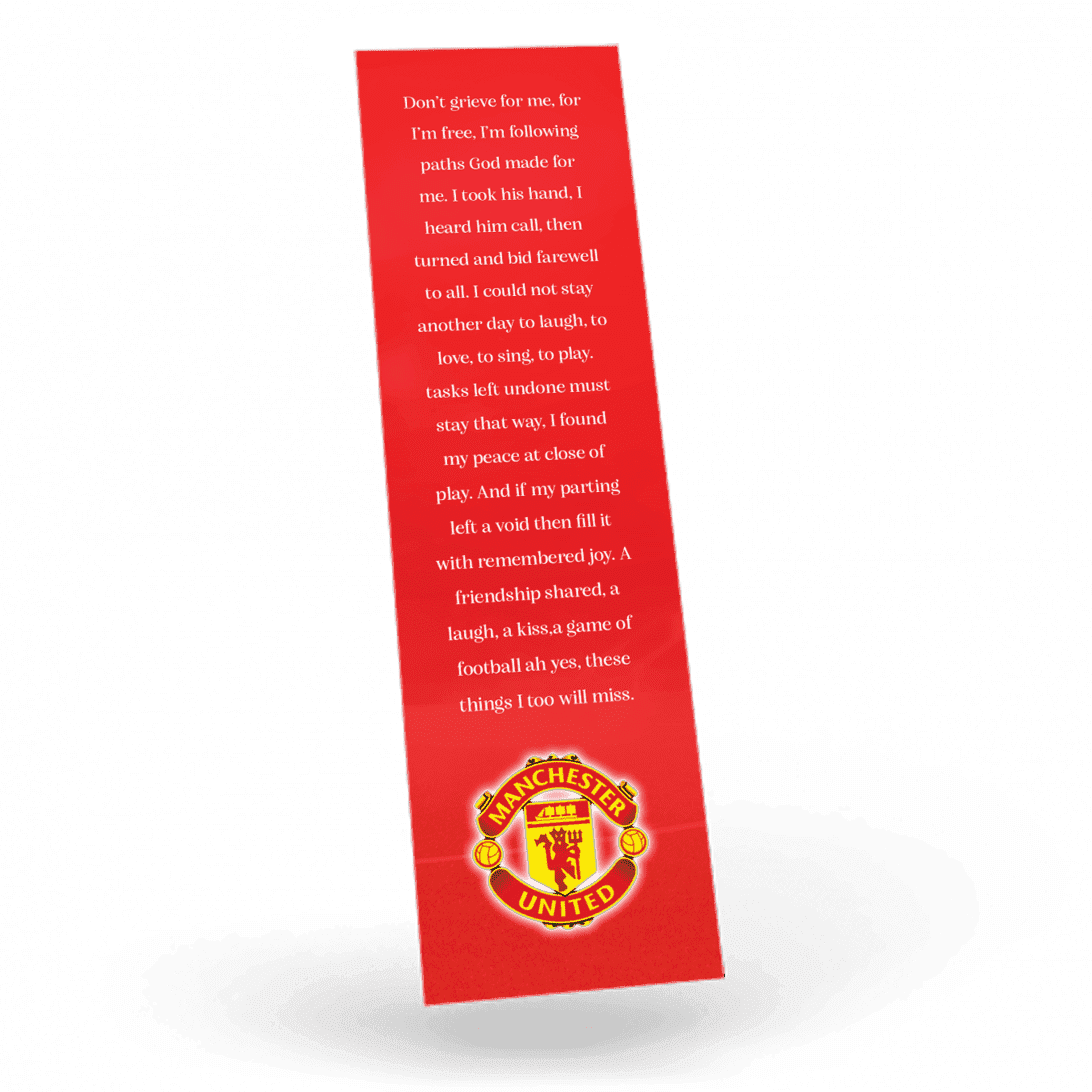 • Our memorial bookmarks are finished to size 55mm x 210mm (Standard Size.)