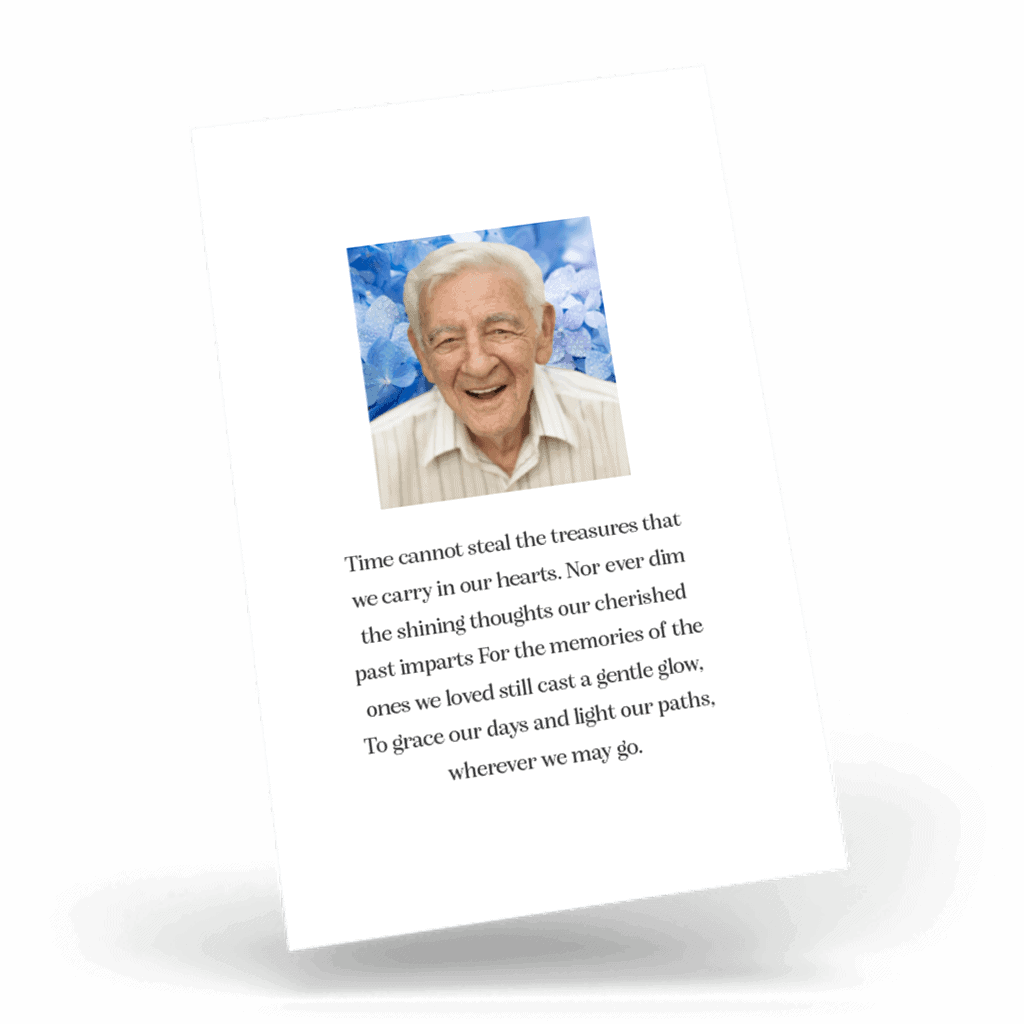“A Personalised Memorial Wallet Card is a popular touching keepsake to remember and pay tribute to a lost loved one. They are a great memory to give to your friends and family and for people who were unable to make the ceremony.”