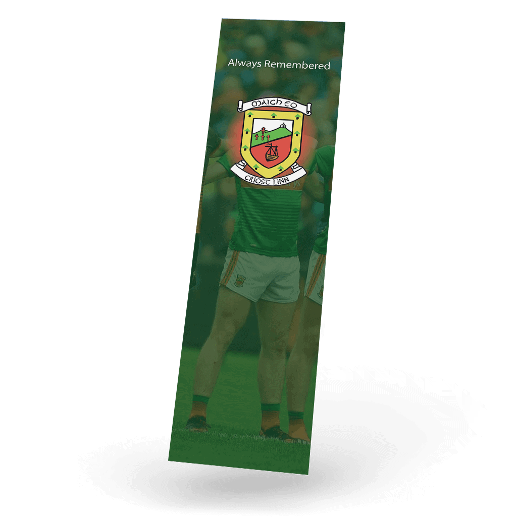 - Our memorial bookmarks are finished to size 55mm x 210mm (Standard Size.)