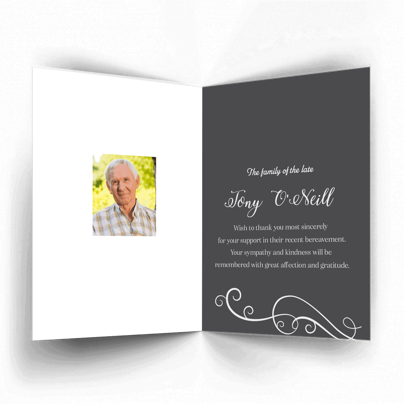“A Personalised Memorial Acknowledgement Card or Thank you card is a touching way to express your gratitude and to acknowledge the importance of the help and support you received after your loss.”