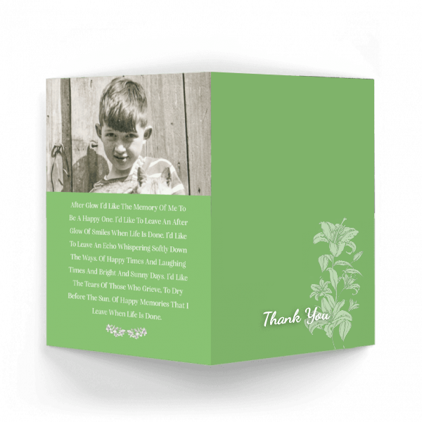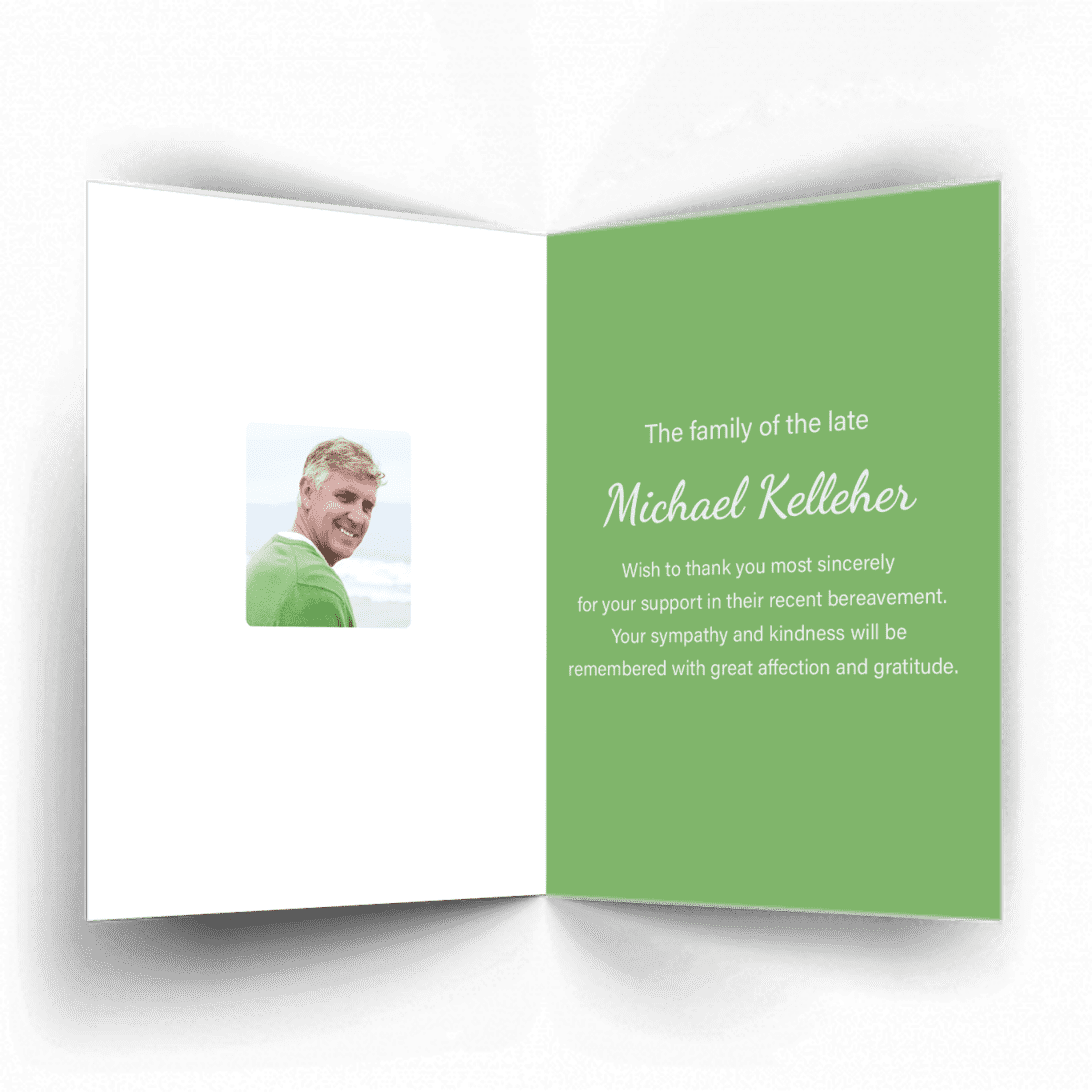 “A Personalised Memorial Acknowledgement Card or Thank you card is a touching way to express your gratitude and to acknowledge the importance of the help and support you received after your loss.”