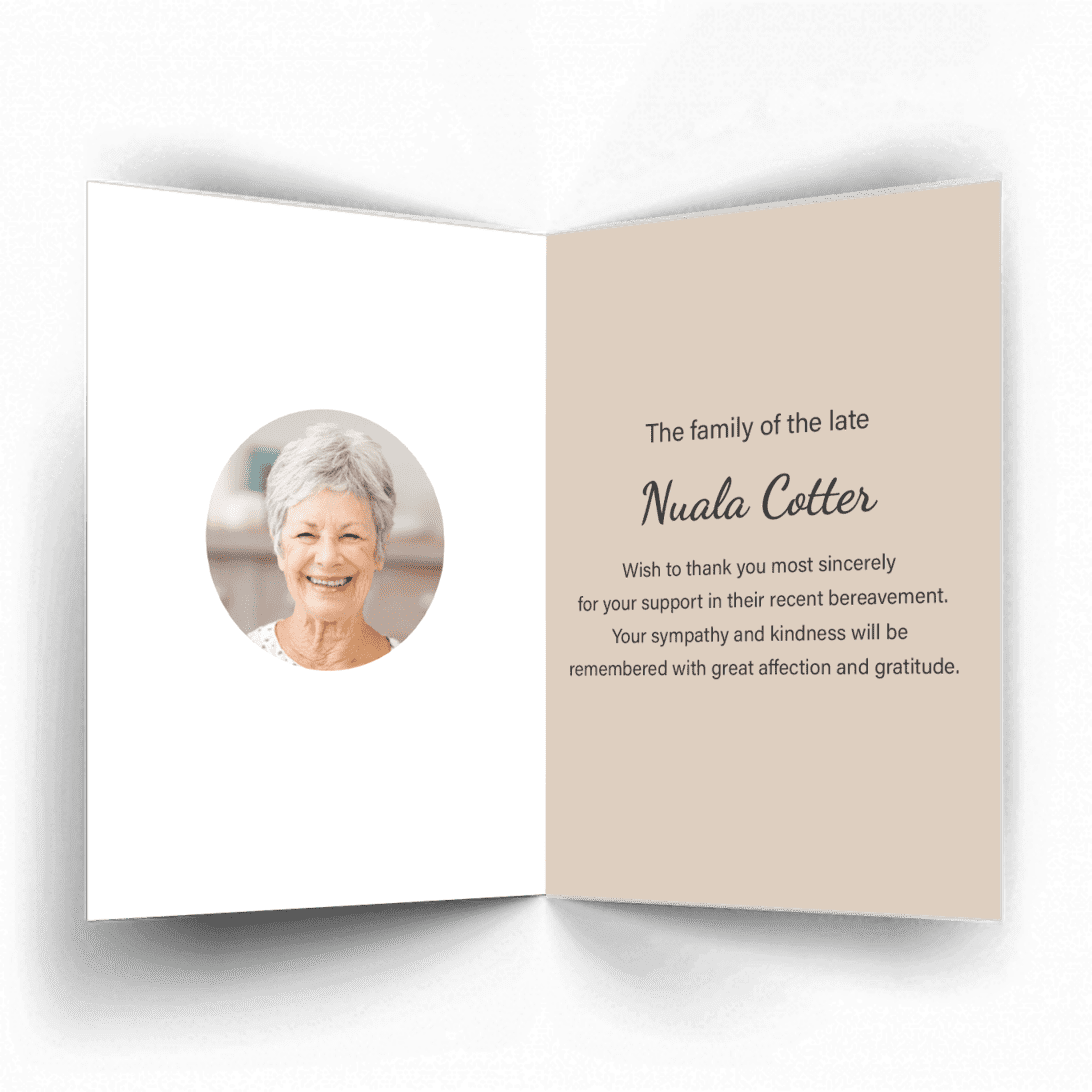 “A Personalised Memorial Acknowledgement Card or Thank you card is a touching way to express your gratitude and to acknowledge the importance of the help and support you received after your loss.”