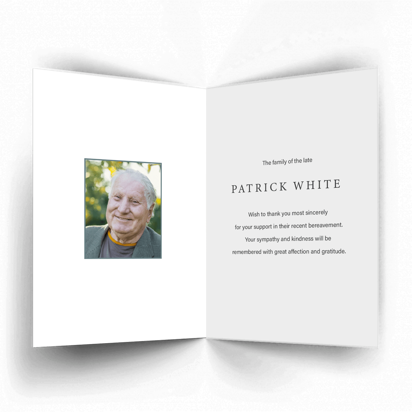 “A Personalised Memorial Acknowledgement Card or Thank you card is a touching way to express your gratitude and to acknowledge the importance of the help and support you received after your loss.”