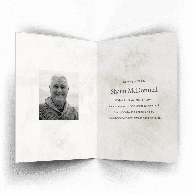 “A Personalised Memorial Acknowledgement Card or Thank you card is a touching way to express your gratitude and to acknowledge the importance of the help and support you received after your loss.”