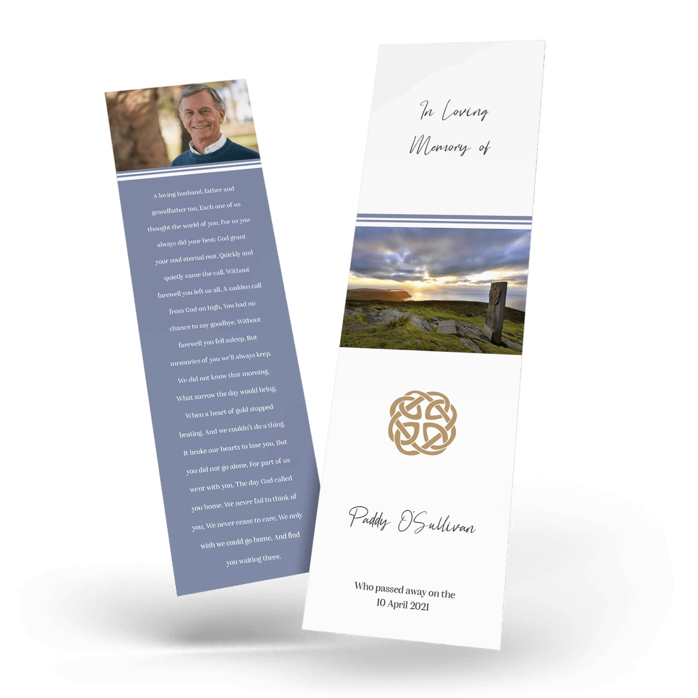 “A Personalised Memorial Bookmark is a popular touching keepsake to remember and pay tribute to a lost loved one. They are a great memory to give to your friends and family and for people who were unable to make the ceremony.”