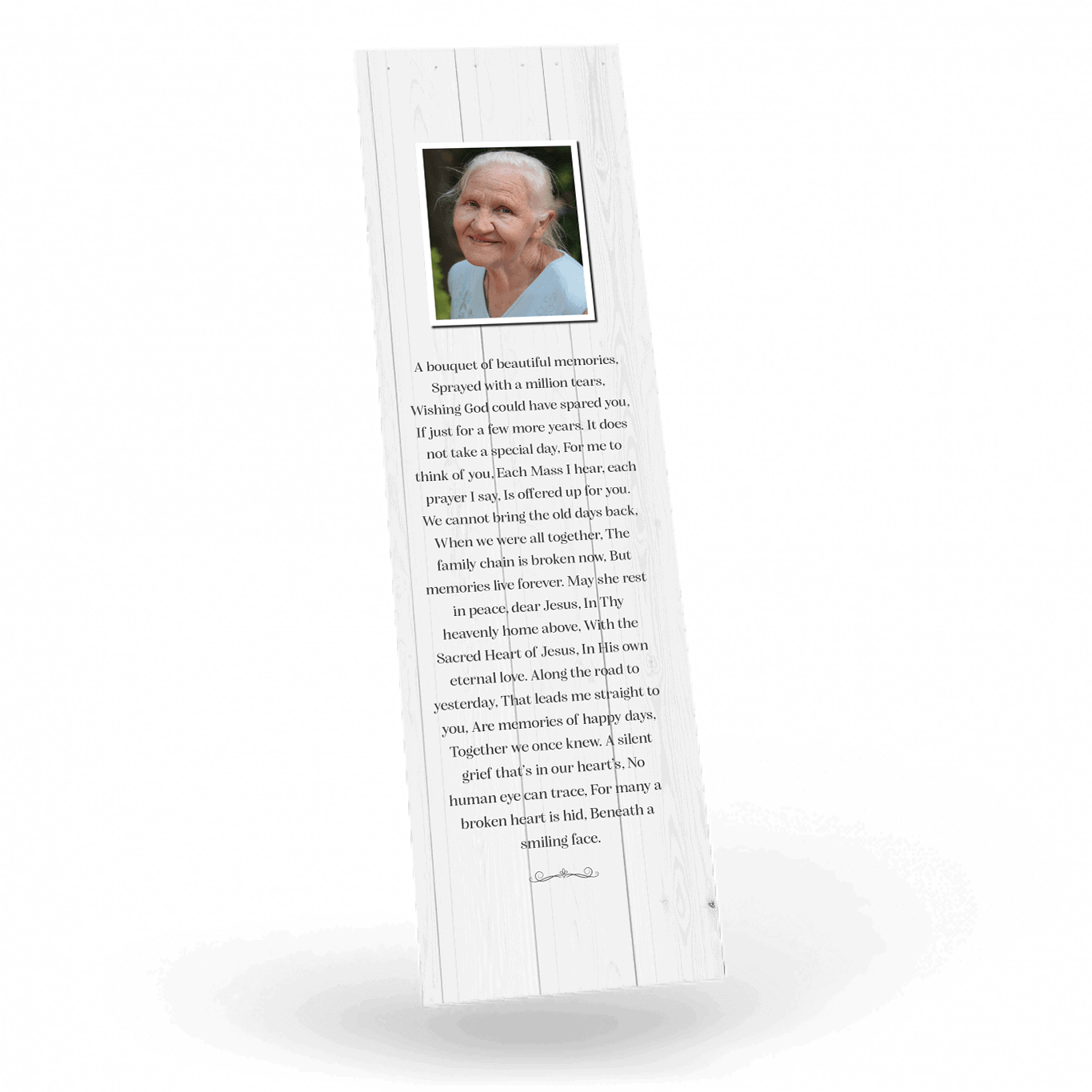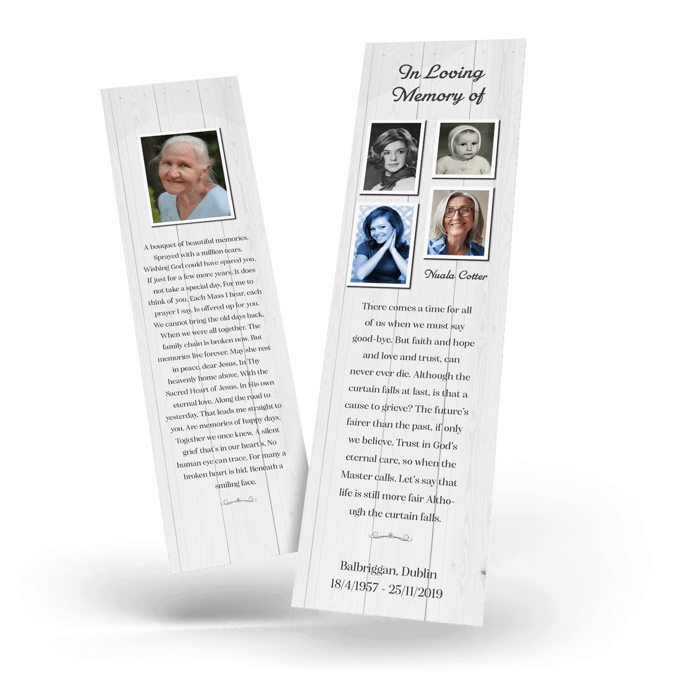 “A Personalised Memorial Bookmark is a popular touching keepsake to remember and pay tribute to a lost loved one. They are a great memory to give to your friends and family and for people who were unable to make the ceremony.”