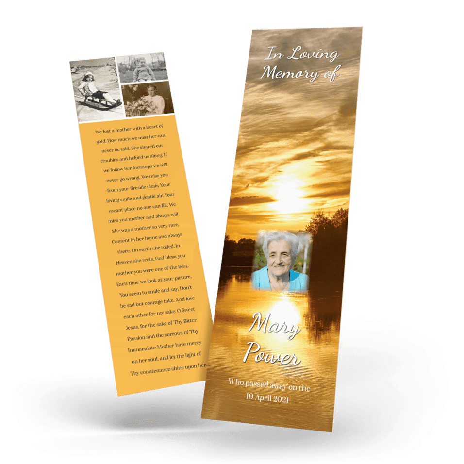 “A Personalised Memorial Bookmark is a popular touching keepsake to remember and pay tribute to a lost loved one. They are a great memory to give to your friends and family and for people who were unable to make the ceremony.”