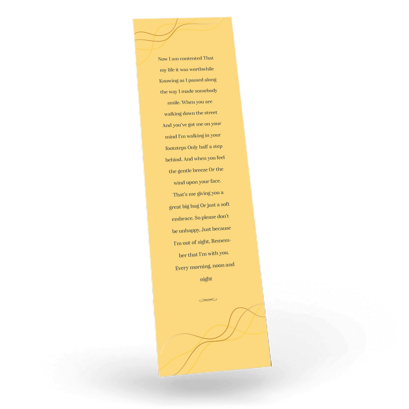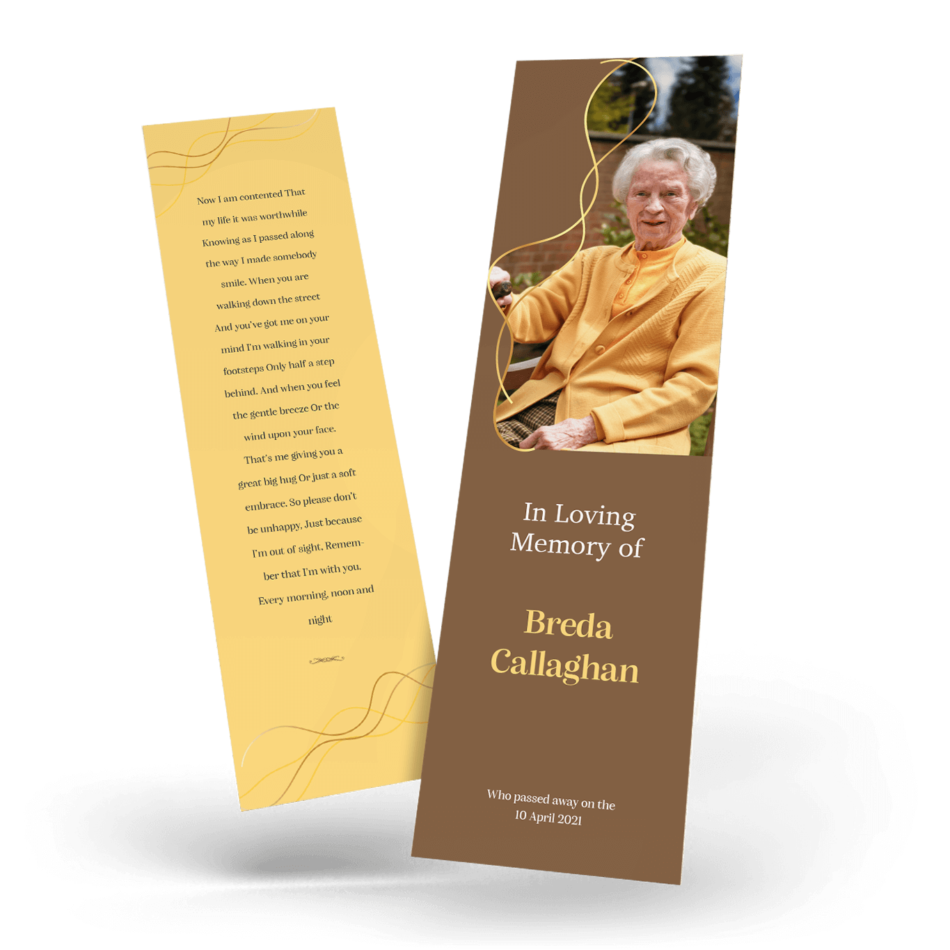 “A Personalised Memorial Bookmark is a popular touching keepsake to remember and pay tribute to a lost loved one. They are a great memory to give to your friends and family and for people who were unable to make the ceremony.”