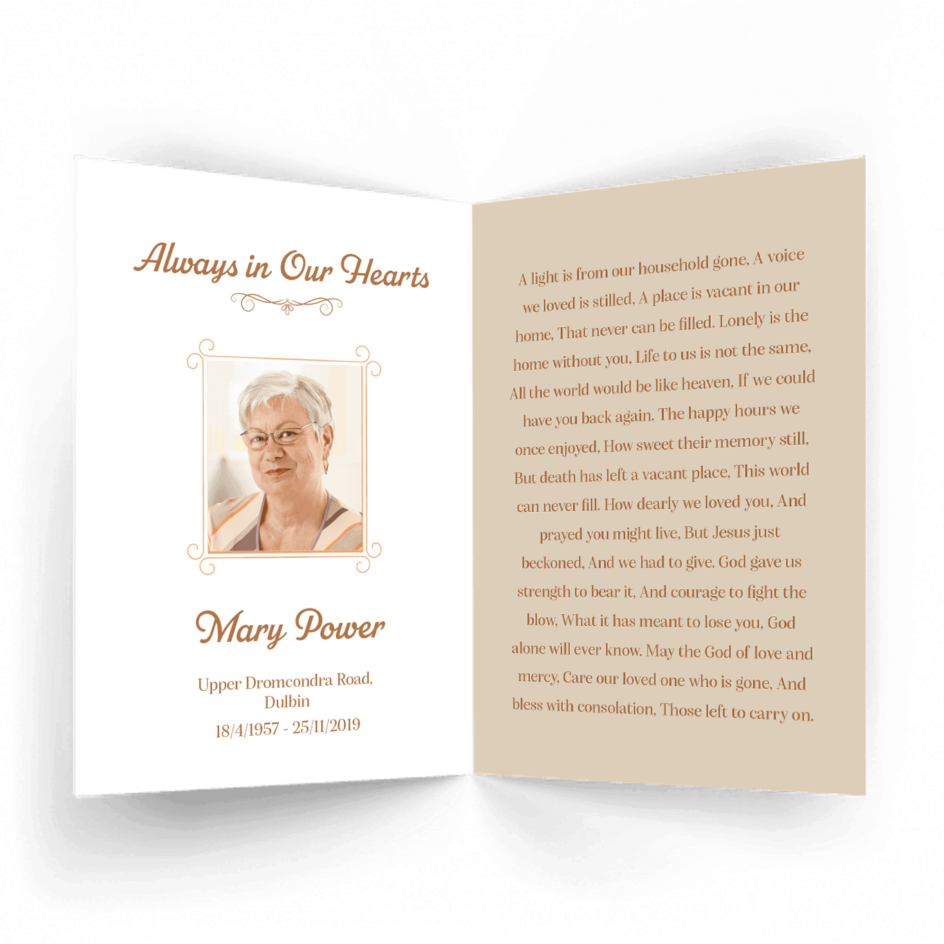 “A Personalised Memorial Card is a popular touching keepsake to remember and pay tribute to a lost loved one. They are a great memory to give to your friends and family and for people who were unable to make the ceremony.”