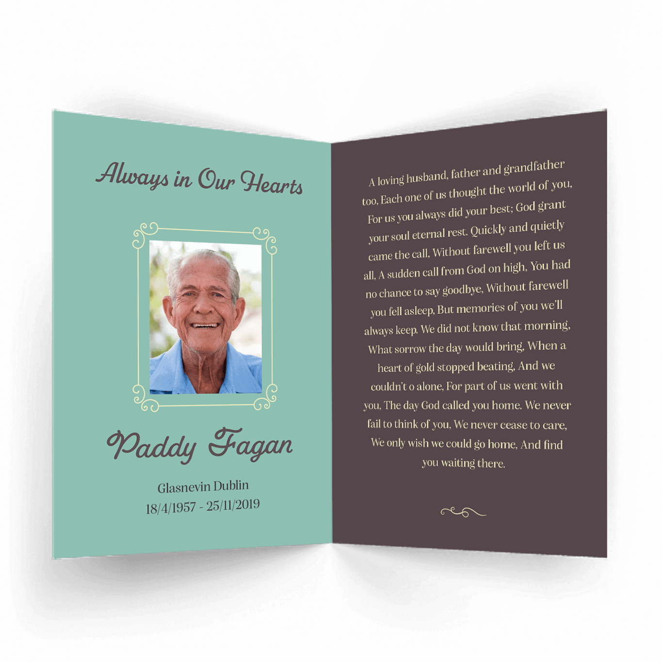 “A Personalised Memorial Card is a popular touching keepsake to remember and pay tribute to a lost loved one. They are a great memory to give to your friends and family and for people who were unable to make the ceremony.”